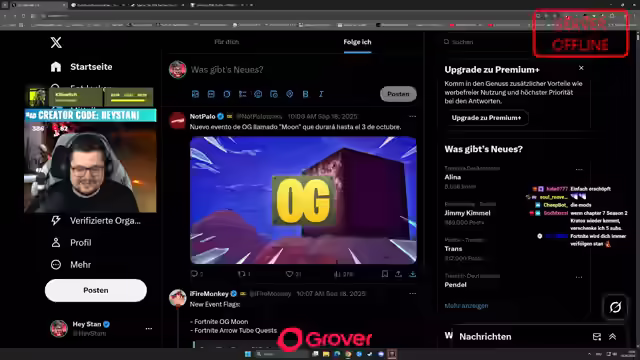 02:57:20Es wird ein neuer Delulu Party Crasher Modus in Fortnite angekündigt, der vorab im Livestream gespielt werden kann. Im Rahmen eines Creator-Programms wird dieser Modus frühzeitig zugänglich sein. Es wird ein Giveaway in Zusammenarbeit mit Grover angekündigt, bei dem eine Playstation 5 Pro für 12 Monate verlost wird. Um teilzunehmen, ist ein Account bei Grover erforderlich. Zusätzlich wird auf die Möglichkeit hingewiesen, Rabattcodes wie 'Stand 40' oder 'Stand 10' bei Grover zu nutzen, einer Vermietungsplattform für technische Geräte wie iPhones, iPads und VR-Brillen. Es wird empfohlen, die Bedingungen für Miete und eventuellen Kauf der Geräte zu prüfen. Es wird betont, dass das Mieten besonders dann sinnvoll ist, wenn man etwas nur ausprobieren möchte und es nicht für eine sehr lange Zeit benötigt.