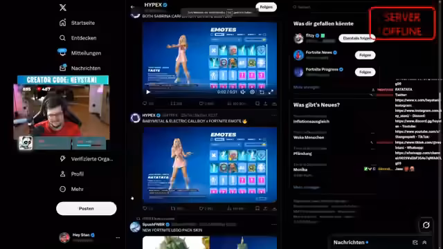 04:22:14Der Streamer fasst die bisherigen Inhalte des Streams zusammen und blickt auf die letzten Updates zurück. Letzte Woche gab es Änderungen an der Mortal Kombat-Map, davor Mortal Kombat Packs und mythische Items. Dieses Woche ist das Sabrina-Carpenter-Update mit der neuen Reload Map drin. Nach der Wartezeit auf die Server plant er, eine entspannte Runde Fortnite zu zocken und später am Abend in Dark Souls einzusteigen. Er kündigt auch einen baldigen 24-Stunden-Stream an und bittet die Community um Likes und Teile.
