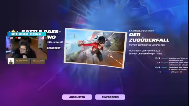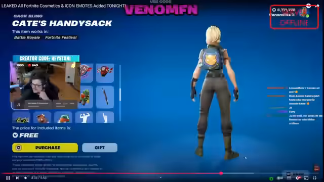 03:11:42Der Stream beginnt mit einer Vorstellung neuer Skins im Fortnite-Item Shop. Dazu gehören der Battle-Tiger-Skin, der als Remake eines Chapter-1-Skins beschrieben wird, sowie der FNCS-Skin, der als Langzeit-Bread bezeichnet wird und nicht limitiert sein wird. Es wird auch der Gratis-Kind-Zadi-Skin, auch bekannt als Killer-Hase, vorgestellt, der einen Emote beinhaltet, wobei die Maske als doff angesehen wird. Im Item Shop soll ein neues Feature eingeführt werden, das anzeigt, wenn ein Item den Shop verlässt, aber nicht, ob es jemals zurückkommt. Zudem wurde der Chewbacca-Skin aus dem Lego Pass für alle im Item Shop freigeschaltet.