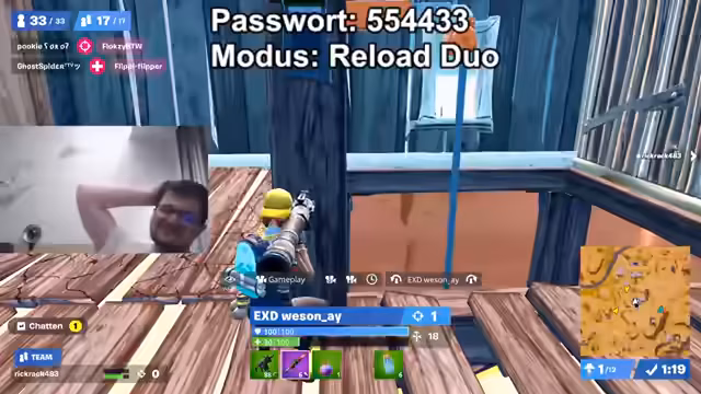 00:40:28Der Streamer versucht, auf dem Laptop mit Touchpad Fortnite zu spielen, um den Zuschauern Background-Content zu bieten. Die Performance ist jedoch äußerst schlecht, was auf das alte Notebook und die Server-Ping-Zeiten in Asien zurückzuführen ist. Es wird deutlich, dass ein normales Zocken unter diesen Bedingungen unmöglich ist. Das Hauptziel bleibt weiterhin, den Zuschauern die Gratis-Drops zu ermöglichen.