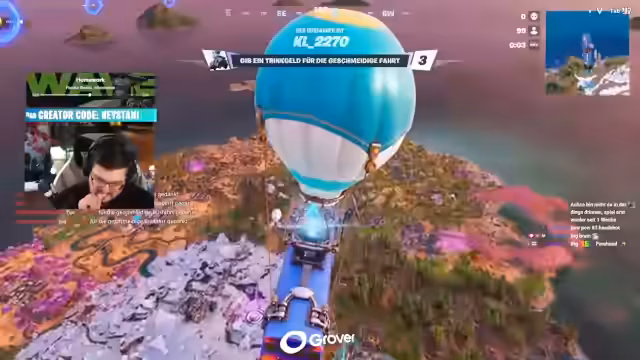 03:46:04Zu Beginn des Streamsabschnitts werden neue und ungewöhnliche Spielelemente entdeckt. Der Streamer sucht nach Lamas und einer neuen Zone für Fingerpistolen, die laut dem Streamer als „Bullshit News“ bezeichnet wird. Nach erfolgloser Suche auf der Karte wird das neue Feature des Huckepack-Reitens vorgestellt und ausprobiert. Dabei werden auch die neuen Piu-Piu-Pistolen erwähnt, die als spaßig und humorvoll beschrieben werden. Der Streamer ist begeistert von der neuen Möglichkeit, mit Teammates auf den Schultern zu reiten und sie quer über die Karte zu tragen.