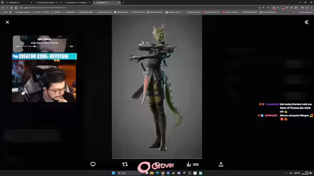 06:01:39Der Streamer zeigt neue Produkte und Spiele wie den 'Roach'-Controller von Capcom, der für Trollen entwickelt wurde. Es gibt positive Reaktionen auf den hohen Production Value. Zudem werden die neuen 1.-April-Inhalte von Fortnite wie das Silent Bundle im Comic-Sans-Stil vorgestellt, die von vielen Zusch gewünscht wurden, aber öffentlich nicht zugegeben werden.
