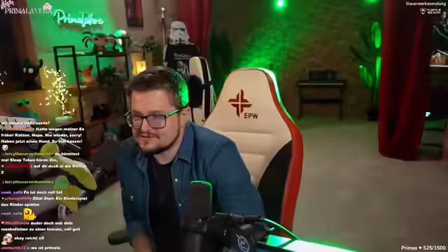 Nach dem Ausfall der Borderlands 4 LAN präsentieren Stan und Primalavera einen Couch-Koop-Stream. Im Programm: Ring Fit, Cuphead und Karaoke. Ein D&D Gewinnspiel wird angekündigt, eine Hollow Knight Figur wird zusammengebaut. Später folgen Karaoke-Einlagen und Sport-Challenges. Der Abend endet mit koreanischem Essen und Gaming-Videos.