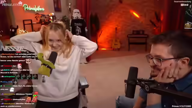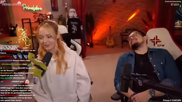 00:10:12Der Stream startet mit einer humorvollen Begrüßung von Stan und Primalavera. Ursprünglich war eine Borderlands 4 LAN geplant, die jedoch aufgrund der Erkrankung von Vincent ausfallen musste. Stattdessen wird ein entspannter Couch-Koop-Stream veranstaltet. Es werden verschiedene Spiele vorgeschlagen, darunter Ring Fit, Cuphead und Karaoke. Primalavera lobt Stans Leidenschaft für Gaming und seine Fähigkeit, Platin-Trophäen zu sammeln. Stan erwidert das Kompliment und lobt Primalaveras aufwendiges Studio und ihre Events wie Synchronroulette. Die beiden sprechen über ihre Lichtanlagen und DJ-Pulte. Es wird überlegt, Karaoke in den Stream einzubauen. Primalavera erwähnt, dass sie den Kinofilm Stitch gesehen hat und begeistert davon ist. Es werden Vorschläge aus dem Chat für Koop-Games entgegengenommen, darunter Mario Party und Human Fall Flat. Stan und Primalavera diskutieren über frühere gemeinsame Gaming-Erlebnisse wie Diablo und Lego Horizon. Sie erwähnen auch, dass diese Woche Silent Hill rauskommt, worauf sich beide freuen.