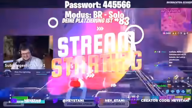 00:00:00Der Stream beginnt mit verschiedenen Gameplay-Momenten in Fortnite. Stan zeigt seine Fähigkeiten im Spiel,谈及各种游戏内元素如Double und Triple Sprinkelinge. Er findet den Snitch und erwähnt, dass man anhand der Skins die Spieler erkennen kann. Der Streamer ist aktiv im Spiel und kommentiert seine Aktionen, während er mit der Community interagiert.
