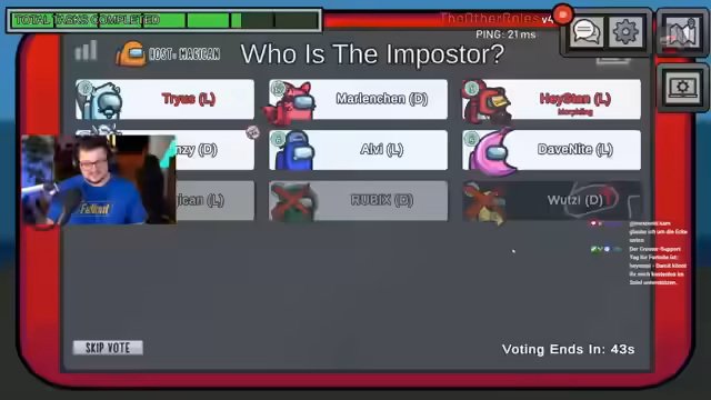 04:20:22Der Stream beginnt mit einer neuen Runde Among Us, in der der Streamer als Ingenieur und andere Spieler wie Dave und Marlinchen involviert sind. Es gibt eine andauernde Diskussion über die Rollen und Taktiken, wobei der Streamer Dave verteidigt, da dieser angeblich auf einen anderen Spieler, Wutzi, zuging. Die Runde ist noch nicht beendet, und der Streamer betont, dass er Dave verteidigen muss, was zu anfänglichen Verwirrungen und gegenseitigen Verdächtigungen unter den Spielern führt.
