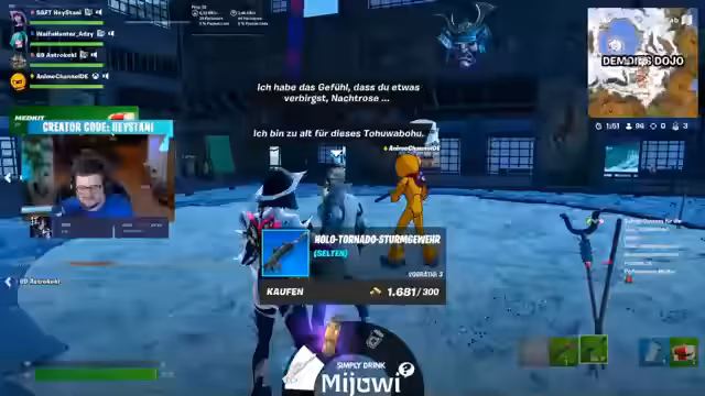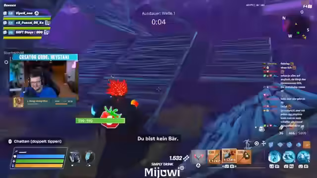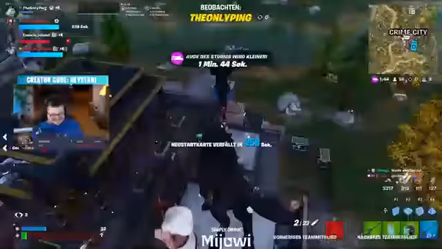 01:49:40Die Gruppe beschäftigte sich intensiv mit dem Fortnite Tresorraub. Es wurde erklärt, dass man warten muss, bis die Stalldinger glühen, bevor man sie kaputt macht, um den Tresor zu beschleunigen. Der Streamer erwähnte, dass er einen Account namens Alabo hat. Es wurde auch über die性问题 des Mobile-Skins gesprochen, der abgelaufen ist. Das Gameplay wurde als Bankrauber-Simulation beschrieben, bei der man die Waffen an den Tresor anbringen muss.
