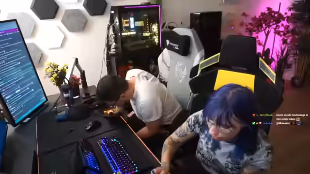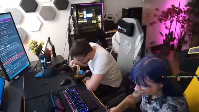 05:07:28Nach dem umfassenden Update-Check beginnt der Koch-Stream. Der Streamer und sein Gast bereiten Ramen zu, was durch technische Schwierigkeiten mit OBS begleitet wird. Parallel dazu wird mit den Zuschachern interagiert, wobei Fragen zu persönlichen Vorlieben, Lieblingspokémon, Cosplay-Projekten und Tattoos gestellt werden. Die Streamer werden auf ihrer Twitch-Plattform weitergeführt.