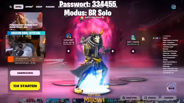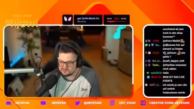 02:40:56Adamus wird vorgeworfen, ohne Rücksicht auf andere zu streamen, was zu Unmut bei Zuschauern führt. Es werden neue Skins angekündigt und Black Widow erhält Urlaub. Julian wird angesprochen, dass er zu schlecht für ein Gewinnspiel mit 50.000 V-Bucks sei, während andere Spieler wie Soul Reaper bereits erfolgreich teilgenommen haben. Es werden Spieler wie Cody, Leon Dupart und Nick erwähnt sowie Kommentare über das Verhalten im Chat gemacht.