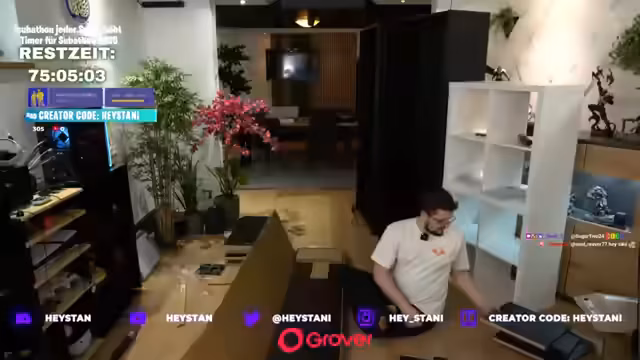 03:50:15Der Zusammenbau der letzten Möbelstücke wird fortgesetzt, wobei der Streamer seine körperliche Anstrengung humorvoll als 'Möbelfitness' bezeichnet. Parallel dazu stellt er eine Partnerschaft mit dem Mietdienst Grover vor und zeigt ein neues, 1500 Euro teures Foto-Objektiv. Er erklärt, wie dieses für die bevorstehende Gamescom unerlässlich sein wird, um aus der Ferne Details wie Bühnenkünstler aufzunehmen.