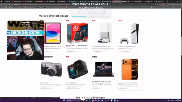 04:23:32Der Streamer erklärt das Konzept von Grover, einer Plattform zum Mieten von Produkten wie Konsolen oder Kameras, um sie auszuprobieren, ohne den vollen Kaufpreis zu zahlen. In Zusammenarbeit mit Grover veranstaltet er ein Giveaway, bei dem ein Gewinner ein Jahr lang ein Produkt aus dem Sortiment von Grover mieten kann, maximal 40 Euro pro Monat. Die Gewinner müssen sich bei Grover registriert und für den Newsletter angemeldet haben.