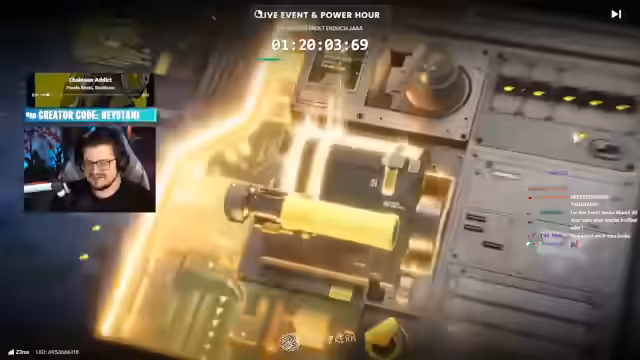06:54:42Das Fortnite Live Event 'Zero Point Charge Up' beginnt. Der Streamer beschreibt den zentralen Vorgang: Eine Rakete lädt Energie auf, die immer stärker wird, aber nach 30 Sekunden zusammenbricht. Dieses Ereignis löst die Freischaltung von neuen Orten für Season 2 auf der Map aus, die überall verteilt erscheinen. Es wird angedeutet, dass dies das sechste Live Event der Season ist und die Erwartungen der meisten Zuschauer enttäuscht werden könnten. Der Streamer kommentiert die Ereignisse live und verweist auf den goldrohren Effekt als Indikator für die Aktivität, obwohl es keine offizielle Schutzzone gab.