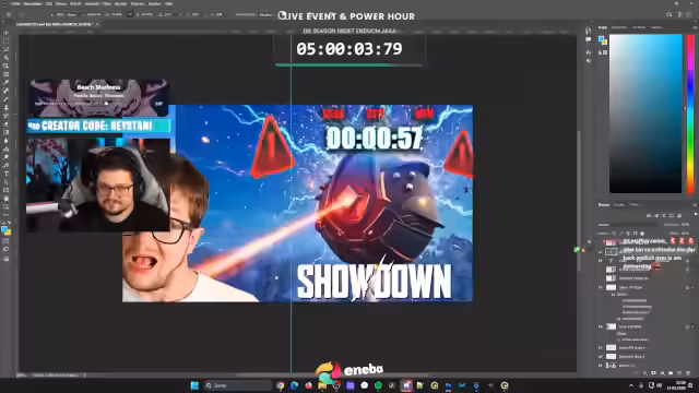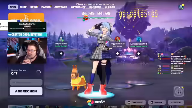 00:00:02Zu Beginn des Live-Events begrüßt der Streamer das Publikum und gibt den aktuellen Stand der Abonnements bekannt, mit einer deutlichen Steigerung auf 15.000 in anderthalb Stunden. Er erwähnt technische Vorbereitungen wie das Setzen des Headsets und die Überprüfung der Lichtverhältnisse. Die Stimmung ist gelöst und humorvoll, wobei er auf einige technische Zwischenfälle und wilde Gaming-Momente in Fortnite Bezug nimmt, wie das Überfahren von Spielern und eine an Star Wars erinnernde Actionsequenz.