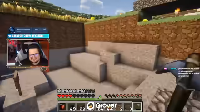 00:53:19Nach dem erfolgreichen Server-Beitritt beginnt die Erkundung der Welt. Es kommt zu humorvollen und chaotischen Szenen: Ein Schaf wird als Begleiter angenommen, ein Bett wird ausprobiert (was zu sexuell anspielenden Dialogen führt) und Ressourcen werden gesammelt. Der Streamer schließt sich einer Gruppe an, die einen größeren Bauplan vorbereitet. Dabei entstehen kurzfristige Projekte wie der Bau eines Tisches und die Verteilung von Holz. Besonders hervorgehoben wird die spontane Kooperation mit anderen Spielern und die Freude an gemeinsamen Aktivitäten trotz anfänglicher Orientierungslosigkeit.