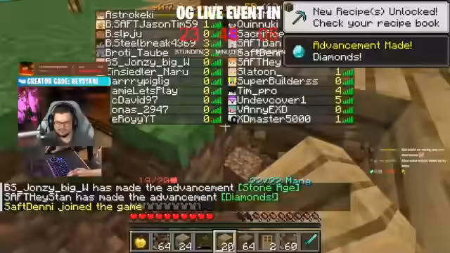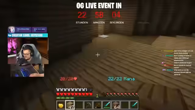 04:41:27Der Streamer begrüßt die Zuschauer und startet ein Minecraft-Event auf dem Community-Server "Saftladen 4", der sowohl für Java- als auch für Bedrock-Edition eingerichtet ist. Nach der Ankündigung auf dem Discord bauen die Teilnehmer an verschiedenen Stellen. Der Streamer selbst plant den Bau eines klassischen Holzhauses nach traditioneller Alpha-Bauweise und plant einen sicheren Bereich für sich, indem er Chunks claimen möchte. Superbuilders plant bereits ambitioniertere Bauwerke, wie einen Summon Temple.