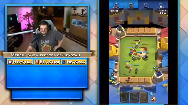 06:31:45Der Streamer absolviert eine intensive Runde Clash Royale mit einer ungewöhnlichen Walking Dead-Karte. Nach einem holprigen Start mit fehlenden Upgrades gelingt es ihm, eine starke Combo aus Level-2-Walküre, Lagerfeuer-Buff und Barbaren aufzubauen. Durch strategische Verkäufe und gezielte Platzierungen, insbesondere eines Mega-Ritters, schafft er es, Gegner zu eliminieren und einen nervenzerfetzenden Sieg davonzutragen, der ihn in eine höhere Liga befördert. Der Fokus lag auf dem Kampf gegen die Karten und der Koordination der Einheiten, wobei der Spaß am strategischen Denken im Vordergrund stand.
