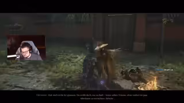 00:00:10Der Stream beginnt mit dem Gameplay in Hogwarts Legacy. Der Streamer erkundet das Spiel, schaltet den letzten Talentpunkt für die Platin-Trophäe frei und aktiviert diesen. Nachdem er eine Animation als Twitch-Moment im April bezeichnet, wird ein missglückter Sprungversuch unternommen, der zu einem sofortigen Tod führt. Er kommentiert das Patsch und kündigt an, aggressiver zu spielen, was zu weiteren, eher erfolglosen Manövern führt. Ein Clip über einen Vorfall mit Kartoffelsäcken wird erwähnt und als Folge-Win eingestuft.