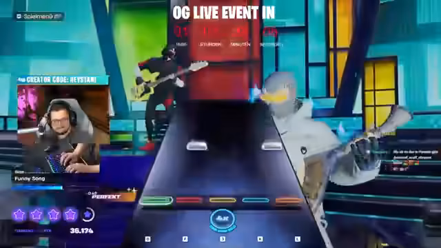 01:45:49Das Gameplay wechselt von Fortnite zu Rocket League. Der Streamer testet verschiedene Spielmodi und denotiert seinen eingerosteten Zustand nach einer längeren Pause. Er kritisiert die Musikauswahl im Festival-Modus, die für ihn anspruchslos und langweilig sei. Trotzdem schafft er es, gute Ergebnisse wie Gold zu erreichen, auch wenn ihm einige Noten durch die Finger rutschen. Der Spaß am Spiel steht im Vordergrund.