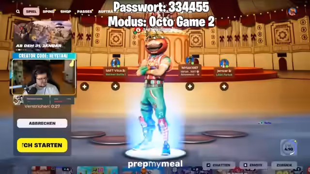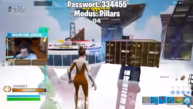 01:21:45Nachdem zunächst Octogame 2 ins Auge gefasst wurde, entscheidet sich der Streamer aufgrund der geringen Online-Zahlen in Fortnite für das Spiel Pillars. Er erwähnt den neuen Event "Pillars of Fortune" und gibt das Passwort "334455" bekannt. Ein Diskussion entsteht über die maximale Spieleranzahl und den Wechsel zu "Pillars Event", da die aktuelle Map buggy ist und der alternative Modus stabiler laufen soll.