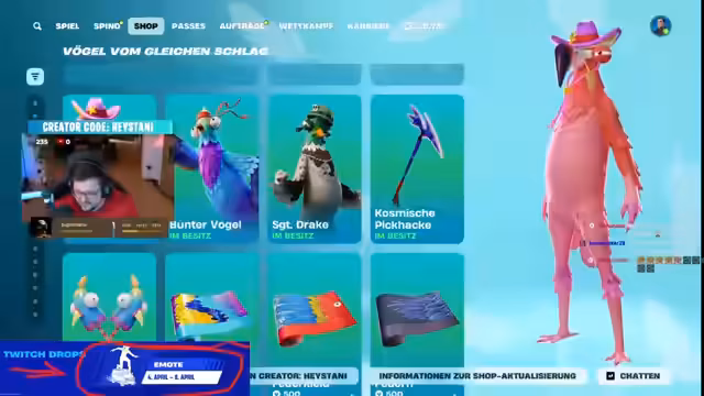 01:58:17Genaue Pläne für die Gamescom werden kurz vorher bekannt gegeben. Der Streamer kommentiert das Inventar und vermutet, dass der Kingsman-Regenschirm das unbekannteste Item in Fortnite ist. Verschiedene LTMs in Reload werden angesprochen, und der Streamer wünscht sich mehr Battle Royale LTMs. Der Kingsman-Regenschirm konnte nur abwehren und war nicht so krass wie die Lichtschwerter, weshalb er in Vergessenheit geraten ist. Pukki gewinnt eine Runde, und der Streamer möchte Bader raiden, erwischt ihn aber nie live. Ein Zuschauer spendet einen Dr. Bleaker Skin, was als 10-Euro-Donation angesehen wird. Es wird über eine toxische Season nach der Star Wars Season spekuliert. Zuschauer werden darauf hingewiesen, ihre Twitch-Inventare auf Drops und Belohnungen zu überprüfen.