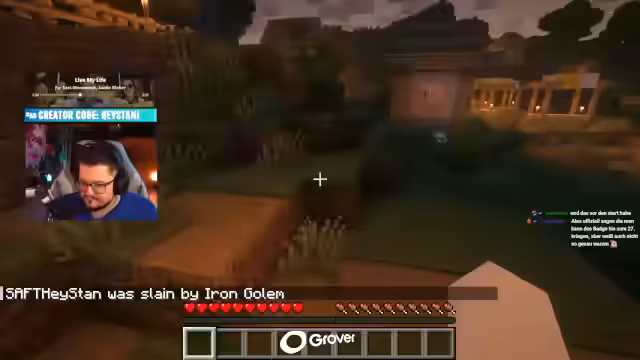 03:09:10Die Minecraft Kooperation konzentriert sich auf die Mission, ein Babyhuhn zu finden, was jedoch erfolglos verläuft, da die gespielte Version nicht die neueste ist und es in der Welt keine Babytiere gibt. Stattdessen wird der Bau einer Hütte als Ziel beschlossen, wobei der Streamer auf die Notwendigkeit von Holz und Werkzeugen eingeht und die Community Server des Kanals erwähnt, die traditionell als Vanilla-Server betrieben werden. Es wird auch die Ankündigung gemacht, dass in diesem Jahr wahrscheinlich wieder ein Community Server starten wird, wobei der Zeitrahmen auf etwa dreieinhalb Monate geschätzt wird.