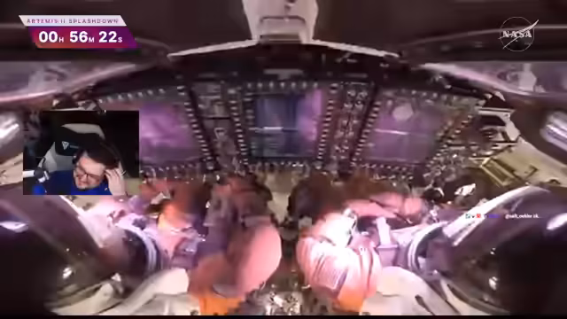 04:23:06Der Fokus verschiebt sich zur anstehenden Artemis 2-Mission, bei der die Raumkapsel in etwa neun Stunden zur Erde zurückkehren und nahe San Diego landen soll. Der Streamer drückt seine Begeisterung für diese Raumfahrt aus und beschreibt die Spannung, die Astronauten während des Wartens auf die Annäherung an die Erde erleben müssen. Er kündigt an, den NASA-Stream auf Twitch zu verfolgen, und erwähnt, dass Zuschauer ein spezielles NASA-Badge erhalten können, wenn sie den Stream verfolgen.