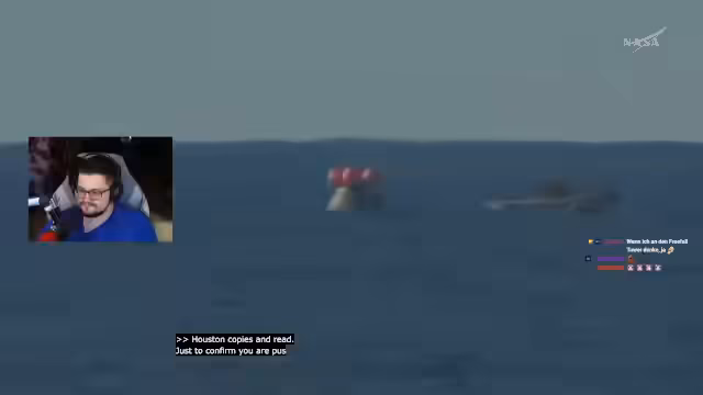 10:10:03Der Streamer und der Chat verfolgen live die NASA-Übertragung und erhalten Einblicke in die letzten Vorbereitungen der Mission. Es wird erklärt, dass die Landung 'Splashdown' genannt wird und im Pazifischen Ozean stattfindet. Es gibt eine Diskussion über die Gefahren des Wiedereintritts in die Atmosphäre, insbesondere die extremen Temperaturen von bis zu 2760 Grad Celsius am Hitzeschild, und die aufwendige Bergung durch die US Navy.
