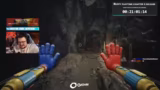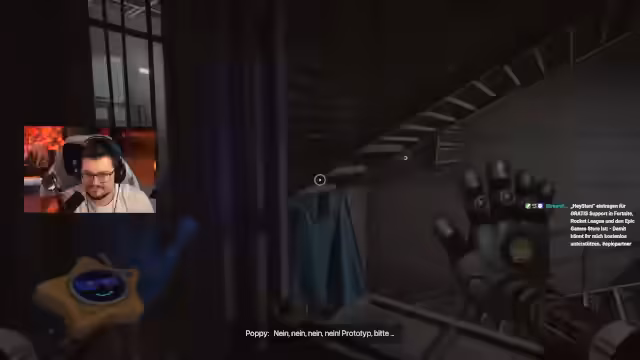 01:50:04Der Stream startet direkt nach technischen Vorbereitungen in Chapter 5. Die Spielfigur bewegt sich in tiefere Ebenen der Fabrik voran. Der Streamer interagiert mit der Umgebung und zieht an Kisten. Es kommt zur ersten Begegnung mit einem Gegner, dem Huggy Wuggy, dessen aggressives Verhalten und neuartiges Sounddesign hervorgehoben werden. Während der Flucht und Interaktion nutzt der Streamer ausfahrbare Arme und berichtet über visuelle Verbesserungen im Vergleich zu den Vorgängerteilen.