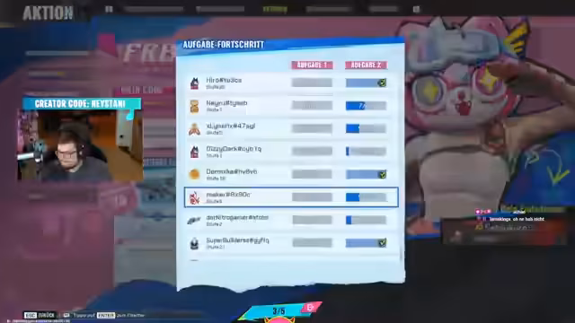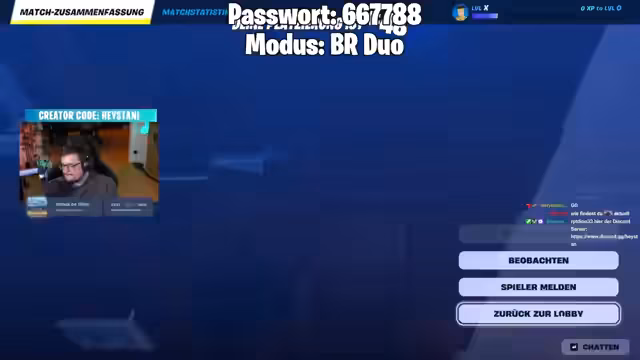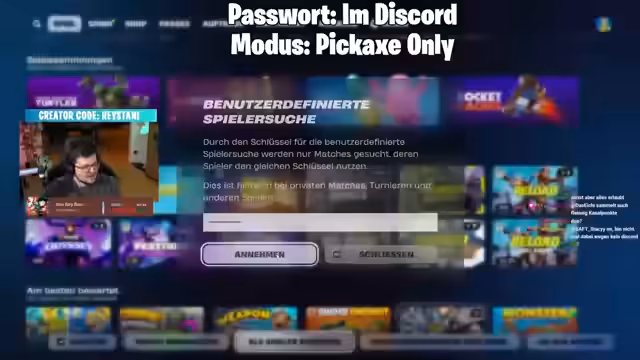 03:11:56Der Streamer stößt auf technische Schwierigkeiten mit der Fortnite-Plattform, die es den Zuschauern erschwert, an Drops teilzunehmen. Er ruft die Community auf, den Stream nicht stummzuschalten, um die Drops zu erhalten, und äußert Frustration über die unzuverlässige Performance. Um einen geregelten und fairen Ablauf für Custom Games zu gewährleisten, wird der Stream über einen Discord-Server organisiert, bei dem Konten verifiziert werden müssen und Regelverstoße mit einem Bann aus der Runde geahndet werden.
