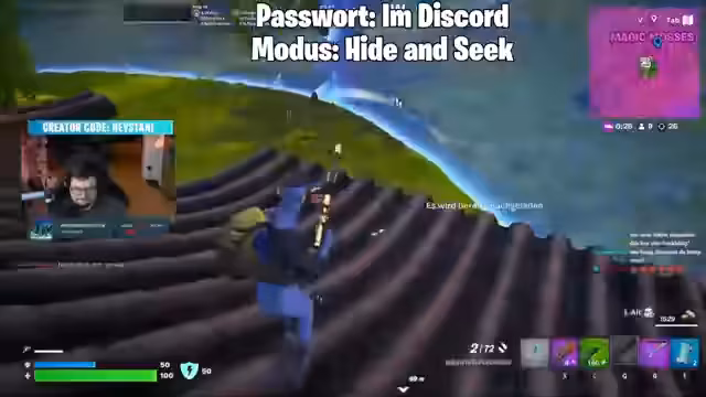 03:56:08Nach einem Spitzhacken-Only-Spiel wechselt der Streamer den Modus und plant ein Hide-and-Seek-Spiel. Als Standort wird die Gegend Foxy Flutgate ausgewählt, da sie aufgrund ihrer Struktur und Größe als geeignet angesehen wird. Auch hier wird die Teilnahme wieder über den Discord-Server gesteuert, um eine kontrollierte Runde zu gewährleisten. Der Streamer übernimmt die Rolle des Suchers und die Teilnehmer müssen sich in der Gegend verstecken, ohne zu looten oder Items zu benutzen.