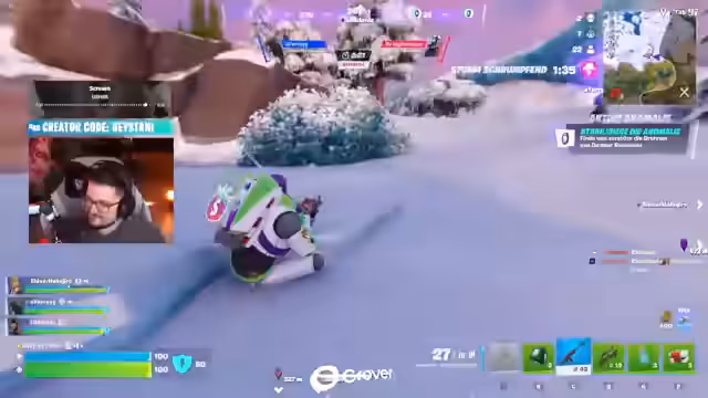 01:26:18Die beiden beschäftigen sich intensiv mit dem Fortnite-Spiel und finden den geheimen Tresor des Eiskönigs. Die Schlüsselkarte dazu befindet sich in einem kleinen Turm, den sie lokalisieren können. Sie finden sogar mehrere God Chests in der Nähe, was den Content des Streams bereichert. Der Streamer zeigt David das Spiel und versucht, ihm die Mechaniken näherzubringen.