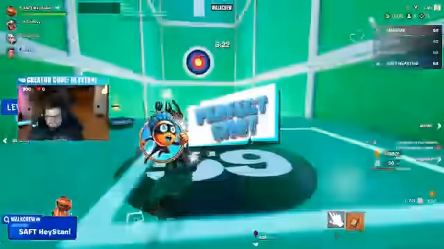02:31:18Nach Abschluss des ersten Minispiels folgt ein weiteres Custom Game: ein Trickshot Parcours. Hierbei müssen die Spieler in sieben Minuten so viele Zielzonen wie möglich abschießen, um Punkte zu sammeln. Das Spiel erfordert eine hohe Präzision und schnelle Reaktionszeit, da man nach jedem Schuss automatisch zur Startposition zurückgesetzt wird. Der Streamer und die anderen Teilnehmer geraten in ein Kopf-an-Kopf-Rennen, bei dem kleine Fehler sofort zu Platzverlusten führen. Die Stimmung ist intensiv und geprägt von Wettkampfgeist.