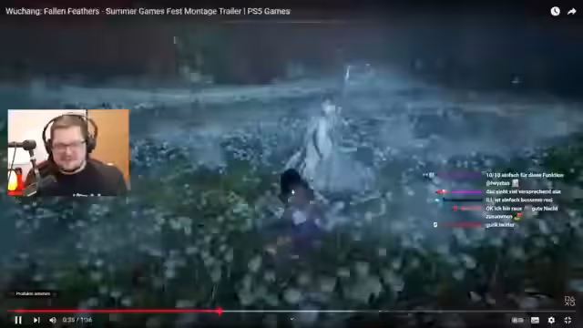04:51:26Im Stream werden mehrere neue Spiele vorgestellt und besprochen. Dazu gehören Mortal Shell 2, ein Souls-like-Spiel, und Lies of P mit einem angekündigten DLC, der als Shadow Drop erscheint. Auch Onimusha mit einem neuen Trailer und Code Vein 2 werden erwähnt. Der Streamer äußert sich sowohl positiv als auch kritisch zu den Trailern und Gameplay-Vorführungen, wobei die grafische Darstellung und das Gameplay zentrale Kriterien sind.