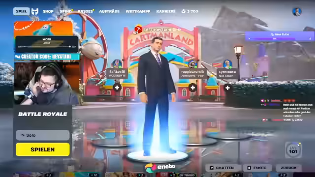 01:45:13Der Streamer testet intensiv den neuen Fortnite-Modus 'Crown Jam', der sich an Rocket League anlehnt. Er berichtet von erfolgreichen Spielrunden, in denen er deutlich mehr Punkte als andere Spieler sammelt, und stellt fest, dass der Modus noch sehr neu ist und kaum verstanden wird. Viele Spieler agieren noch planlos, was ihm einen deutlichen Vorteil verschafft. Er gibt den Tipp, bei dem aktuell hohen Andrang auf den zweiten Knopf zu drücken, anstatt das Match zu verlassen, da dies oft zu langen Wartezeiten führt.