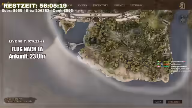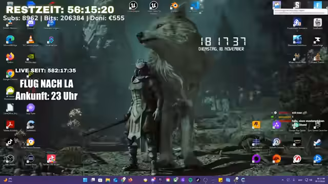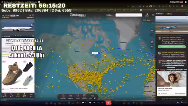 00:00:00Der Stream beginnt mit der Feststellung, dass der automatische Neustart des Streams funktioniert hat, wodurch die Streamdauer von über 48 Stunden fortgesetzt wird. Es wird erklärt, dass Twitch bei überlanger Streamzeit automatisch eine neue VOD erstellt und den Stream kurz unterbricht, um ihn dann wieder zu verbinden. Schnell werden technische Probleme mit Emotes und Symbolen bemerkt, die auf einen Ausfall von Cloudflare zurückgeführt werden. Dies betrifft unter anderem Beta-TTV-Emotes und das Laden von Moderator-, Verifiziert- und Prime Gaming-Symbolen. Trotz dieser Schwierigkeiten kann die Flugverfolgung von Stans Flug nach Los Angeles über Flightradar weiterverfolgt werden. Es wird festgestellt, dass der Flug die grönländische Küste erreicht hat und nach vier Stunden Flugzeit bereits gefühlt die Hälfte der Strecke zurückgelegt ist, obwohl noch sieben Stunden Flugzeit bevorstehen. Ein Mod bietet an, den Fluglink im Chat zu pinnen. Während einer kurzen Pause des Hauptstreamers wird die Diskussion über die Vor- und Nachteile von Browser-Chats und externen Tools wie Chatterino fortgesetzt, wobei die persönliche Präferenz für Browser-Chats aufgrund der Monitoranzahl betont wird.