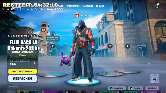 04:51:29Nach den anfänglichen Problemen wird beschlossen, den Spectator-Modus erneut zu testen, diesmal im Creative-Modus von Fortnite, um herauszufinden, ob er dort funktioniert. Der Streamer und die Community betrachten dies als ein "Mythen-Team", das den Spectator-Modus untersucht. Trotz der Hoffnung auf Besserung stellt sich heraus, dass der Spectator-Modus weiterhin fehlerhaft ist, da der Streamer aus privaten Matches gekickt wird. Dies führt zu der Erkenntnis, dass der Streamer selbst mitspielen muss, obwohl er betont, dass er nicht gut in Fortnite ist, insbesondere im Bauen. Die Community schlägt vor, "Null Bauen"-Modi zu spielen, um seine Teilnahme zu erleichtern. Die Diskussion dreht sich auch um die Suche nach "Blitz-Royale-Siegen" für einen speziellen Schirm im Spiel, wobei der Streamer noch zwei Siege benötigt. Die Spieler versuchen, eine Lobby zu finden, in der dies möglich ist, während weiterhin technische Schwierigkeiten und Abstürze auftreten.