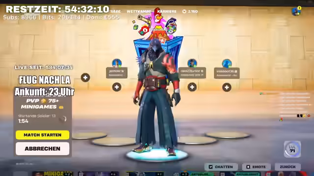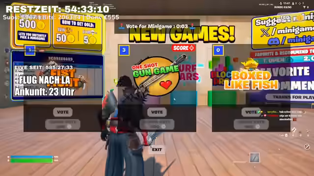 04:43:19Während des Versuchs, den "Battle-Bühne"-Modus in Fortnite zu starten, treten erhebliche technische Probleme auf. Der Spectator-Modus, den der Streamer nutzen wollte, funktioniert nicht wie erwartet, da Spieler wegen Inaktivität gekickt werden. Kurz darauf stürzt das Spiel bei mehreren Teilnehmern, einschließlich des Streamers und anderer Spieler, ab. Dies führt zu der Annahme, dass der "Battle-Bühne"-Modus aufgrund der Instabilität gestrichen werden muss. Die Community schlägt daraufhin vor, zum "Colorswitch"-Modus zurückzukehren oder einen "Chaos Colorswitch" zu starten. Es gibt Verwirrung über die genaue Bezeichnung des Modus, da eine vorgeschlagene Map als "Minigame Box PvP" betitelt ist, aber auch "Color Switch"-Elemente enthält. Die anhaltenden Abstürze und Schwierigkeiten beim Beitritt zu Fortnite deuten auf größere Probleme mit dem Spiel oder den Servern hin, was die Stimmung im Chat beeinträchtigt.