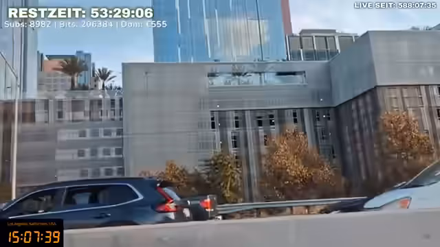 08:00:18Nachdem der Uber-Voucher nicht funktioniert, bestellt der Streamer die Fahrt für 82 Dollar über seine Mastercard. Jasper, der Uber-Fahrer, holt ihn ab. Während der Fahrt unterhalten sich die beiden über Videospiele. Jasper, der sich als „Battlefield-Typ“ bezeichnet, ist überrascht, dass der Streamer live streamt, hat aber keine Einwände. Sie sprechen über Fortnite, GTA 6 und die kommende Los Angeles-inspirierte Fortnite-Map, die im Dezember erscheinen soll. Der Streamer erwähnt, dass er in L.A. ist, um bei Cato in seiner neuen Villa zu wohnen, was er als „Business“ bezeichnet, obwohl er kein Geld verdient. Die Fahrt zum Hotel dauert aufgrund des Verkehrs etwa anderthalb Stunden. Er bedankt sich bei seinen Zuschauern für ihre Unterstützung und freut sich über die anhaltend hohe Zuschauerzahl, obwohl es in Deutschland bereits spät ist.