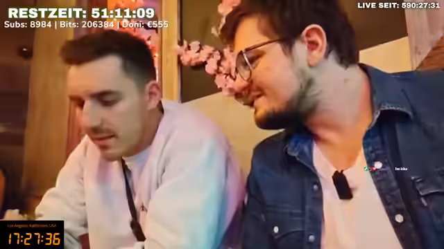 11:18:19Der Streamer freut sich auf die Weiterreise nach Las Vegas und überlegt, ob sie auf dem Weg dorthin Nationalparks wie das Death Valley besuchen werden. Ursprünglich war geplant, auf dem Weg nach Las Vegas an zwei bis drei Skateparks, darunter Woodward West, Halt zu machen, aber diese sind leider geschlossen. Er erwähnt, dass er eine eSIM für seine Datenverbindung nutzt und 400 Dollar Kaution für etwas hinterlegen musste, was er nach ein paar Wochen zurückerhält. Während des Essens lobt er die Garlic Edamame und die Ramen. Er ist beeindruckt von Fix's Arbeitsmoral, der auch in Amerika noch ein Video dreht, anstatt Urlaub zu machen. Der Subathon wird voraussichtlich bis Mitte Dezember dauern, möglicherweise sogar bis zum Jahresende, um das neue Jahr und seinen Geburtstag im Januar mitzunehmen. Die Zuschauer werden dazu aufgerufen, den Stream zu unterstützen, um den Subathon zu verlängern.