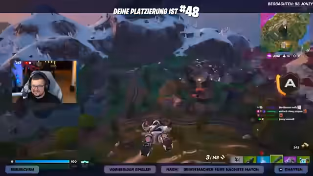 02:32:55Der Streamer reagiert auf ein weiteres Video von Reason über das aktuelle Stand von Fortnite. Er analysiert Reasons Kritik an der Spielergemeinschaft und den sinkenden Spielerzahlen. Dabei stellt er fest, dass Reasons Meinung stark gebottet wirkt. Im Gegensatz zu Reasons hardcore Wettbewerbsansicht betont der Streamer seinen eigenen, spaßorientierten Spielstil und ist gespannt auf den kommenden World Cup und die Teilnahme von asiäischen Top-Spielern.