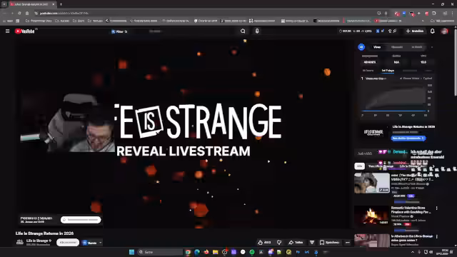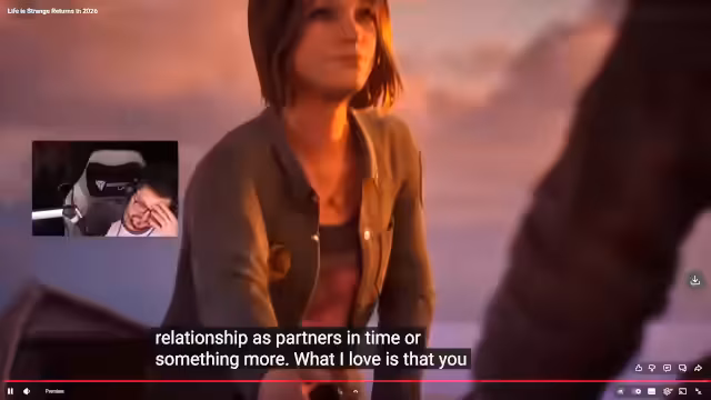 03:00:34Der Stream unterbricht das Resident Evil Gameplay für einen angekündigten Titel. Es folgt die offizielle Ankündigung von 'Life is Strange Reunion'. Die Vorstellung zeigt die Rückkehr der Charaktere Max und Chloe, die eine neue Mystery in Arcadia Bay lösen müssen. Die neuen Gameplay-Mechaniken wie die Rückspulfunktion 'Rewind' und Chloes 'Backtalk' werden vorgestellt und als entscheidend für die Ermittlung betont.