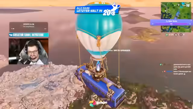 00:00:05Der Streamer startet mit einem aggressiven Gameplay in einem Spiel, bei dem er kurz vor dem Endgame steht. Während des Spiels interagiert er intensiv mit dem Chat und beschreibt spektakuläre Kills, Aktionen und unerwartete Ereignisse. Er kommentiert das Geschehen mit großer Begeisterung und erwähnt eine Leiter, die er gefunden hat, sowie eine "Ult", die er gezogen hat, was zu mehreren Kills führt.