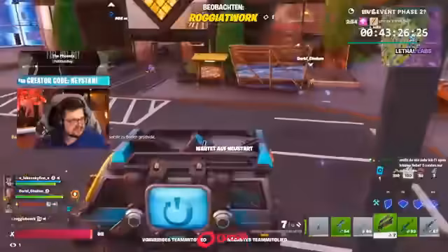 00:00:00Der Stream startet mit intensivem Fortnite-Gameplay, bei dem der Streamer enge Kämpfe und knappe Siege beschreibt. Dabei werden wiederholt Begriffe wie "Kombo Schwambo" und "30er-Bomb" verwendet, um dramatische Situationen zu kommentieren. Neben dem Spielgeschehen stehen humorvolle Anekdoten im Fokus, etwa über vermeintliche Bugs, Ungereimtheiten bei den Aufgaben und die obsessive Jagd nach Skins und saisonalen Belohnungen. Der Streamer erwähnt auch seine frustration mit dem Spiel und die ständige Suche nach der nächsten Herausforderung.