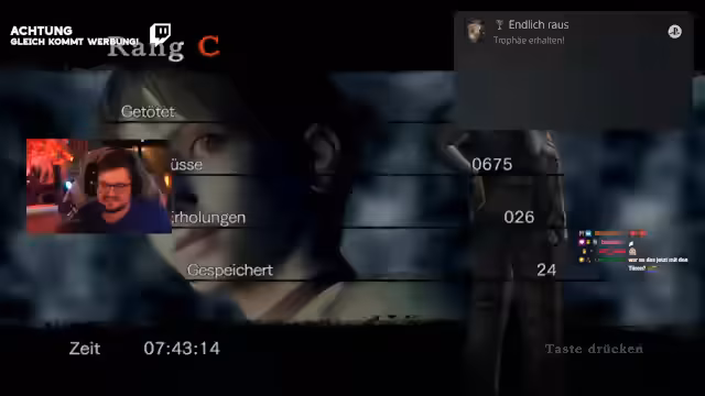 07:36:13Nach dem Kampf wird der Weg zum nächsten Safe Room gesucht. Der Streamer erkundet neue Bereiche und sammelt weitere Items. Er findet eine System-Platine und diskutiert über die Notwendigkeit von Batterien und Chemikalien. Die Spielerin Rebecca wird dabei als Unterstützung genutzt, während Billy die Hauptfigur steuert und neue Rätsel lösen muss.