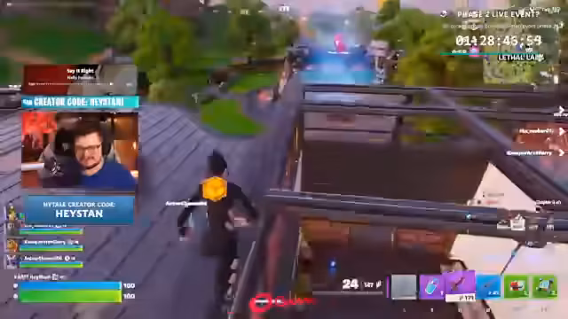 05:03:40Der Streamer kämpft mit einem speziellen Glibbertyp, den er nicht besiegen kann, da dieser unsterblich zu sein scheint. Er muss mit Rebecca an diesem Hindernis vorbeikommen, was durch Platzprobleme im Inventar erschwert wird. Nachdem er den Schaden eingenommen hat, plant er, mit Billy weiterzugehen, um Rebecca zu retten, und stellt dabei fest, dass das Gefühl, eine Person von Fortnite zu sein, deutlich spürbar ist.