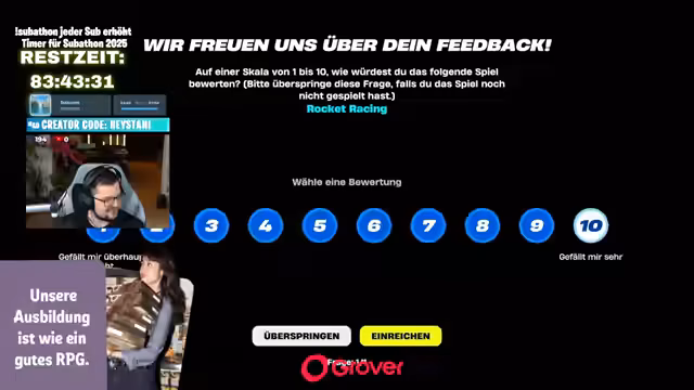 02:40:00Es wird vorgeschlagen, dass Fortnite ein neues 'Rette die Welt'-Spiel mit Open-World-Elementen veröffentlichen könnte, in dem Spieler Basen bauen und die Basen anderer Spieler besuchen können, ähnlich wie bei 'Once Human'. Der Streamer äußert den Wunsch, wieder mehr Mangas zu lesen, da er nicht mehr alle Serien, Filme und Spiele unter einen Hut bekommt. Es wird die Idee einer Fortnite-Serie diskutiert, die ähnlich wie 'Arcane' für 'League of Legends' oder 'Cyberpunk: Edgerunners' für 'Cyberpunk 2077' einen Hype auslösen könnte. Die Serie sollte für Erwachsene gemacht sein und emotionale Charaktere mit Tiefe beinhalten, etwas, das Fortnite bisher in seiner eigenen Story vermissen lässt. Es wird erwähnt, dass Ranked 2.0 kommen wird und eine Weiterentwicklung des bisherigen Ranked-Modus darstellt.