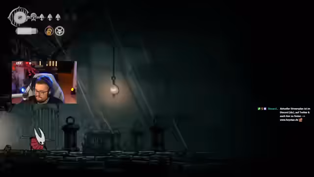 08:04:57Der Streamer betont, dass das Entwicklerstudio von Hollow Knight ihre Leidenschaft fortgesetzt und eines der beliebtesten Spiele überhaupt programmiert hat. Er kritisiert die negativen Aspekte von Social Media und hofft, dass sich Leute, die in Kommentaren unsachlich äußern, dafür schämen. Der Streamer verliert sich kurz in der Erkundung eines Gebiets im Spiel, sucht nach einem Quick-Travel-Punkt und verirrt sich dabei mehrfach. Er klettert wiederholt an derselben Stelle hoch, obwohl er woanders hin muss. Am Ende beschließt er, zur Bank zurückzukehren. Er kommentiert die lange Stream-Dauer und seine 'Sucht' nach dem Spiel und hofft, durch das Streamen reich zu werden und viele Abonnenten zu gewinnen. Er erwähnt einen ungewöhnlichen Crit-Treffer im Spiel und scherzt über seine langen Stream-Zeiten, die seine Stammzuschauer schon gewohnt sind. Er verweist humorvoll auf den Kapitalismus im Spiel, wo ihm das Geld aus der Tasche gezogen wird und die Inflation grassiert. Er spielt mit dem Gedanken, wie lange er noch streamen wird und hofft, bald die Kartenfrau zu finden.