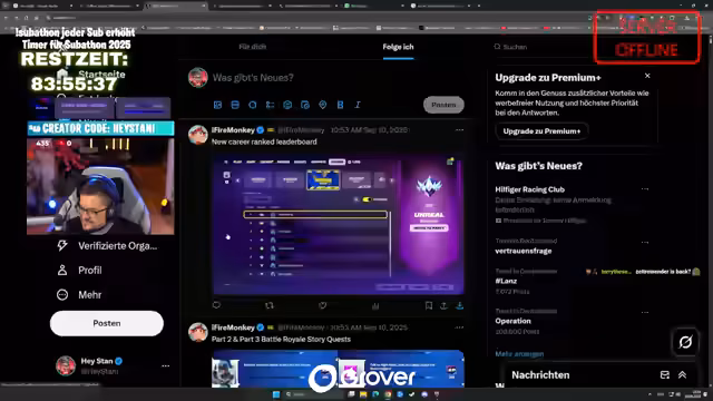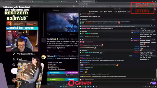 05:11:57Es wird die Partnerschaft mit Grover erwähnt, bei der man mit den Rabattcodes Stan40 (40 Euro Rabatt im ersten Monat) und Stan10 (10% Rabatt bei längerer Miete) Artikel mieten kann. Es wird empfohlen, Grover zu nutzen, um beispielsweise VR-Brillen oder das neue iPhone zu testen, ohne sie gleich kaufen zu müssen. Es wird auch auf ein laufendes Gewinnspiel hingewiesen, dessen Status noch unklar ist. Es wird über einen kürzlichen IRL-Stream in Kombination mit Fixed Chat gesprochen, der viel Spaß gemacht hat, aber Soundprobleme hatte. Es wird überlegt, ob man den Fix für zukünftige IRL-Streams einladen soll, möglicherweise für einen Grillstream oder Segeltrip. Verschiedene IRL-Projektideen werden diskutiert, wie Bouldern oder ein Gymtag in Berlin, wobei die Schwierigkeiten bei öffentlichen Gyms erwähnt werden. Es wird auf Kommentare von Zuschauern eingegangen, und es wird betont, dass man nicht jeden Zuschauer persönlich kennen kann, insbesondere wenn sie neu im Stream sind. Abschließend wird ein Thumbnail für das Video erstellt und überlegt, welche Elemente es enthalten soll.