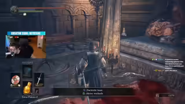 04:09:10Der Streamer startet in der Welt von Dark Souls 3 und kommentiert das Gameplay. Er erwähnt, dass alle Drops, insbesondere für Pharon, nun vorbei sind. Er spielt und erkundet die Umgebung, kämpft gegen Gegner und findet Gegenstände. Dabei berichtet er über seine Erfahrungen mit den Waffen und den Kampfmechaniken. Er vergleicht die Waffen wie das Eisenschwert und die doppelten Klingen und entscheidet sich für eine effektivere Ausrüstung. Er erkundet verschiedene Gebiete, kämpft gegen Bosse und sammelt Ressourcen wie Titanit, um seine Waffen zu verbessern.