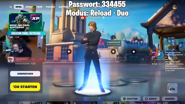 00:54:30Nach der umfassenden Trailer-Analyse wechselt der Fokus auf das aktuelle Gameplay. Es wird auf den Fortschritt des Live-Events hingewiesen, das sich in der finalen Phase befindet und durch eine Explosion aktiviert wurde. Die Chat-Community wird zum Mitmitten in Custom Games mit einem spezifischen Passwort eingeladen. Der Streamer drückt seine große Begeisterung für die Season aus und betont, dass die wöchentlichen Events und Features wie das Fliegen mit X-Wings die Spieler fesseln werden. Parallel wird das aktuelle Gameplay von Fortnite Reload gezeigt, um Abwechslung zu bieten und auf die vielfältigen Inhalte des Streams hinzuweisen.